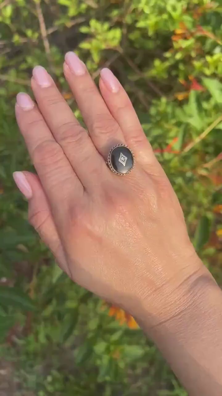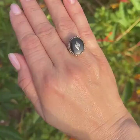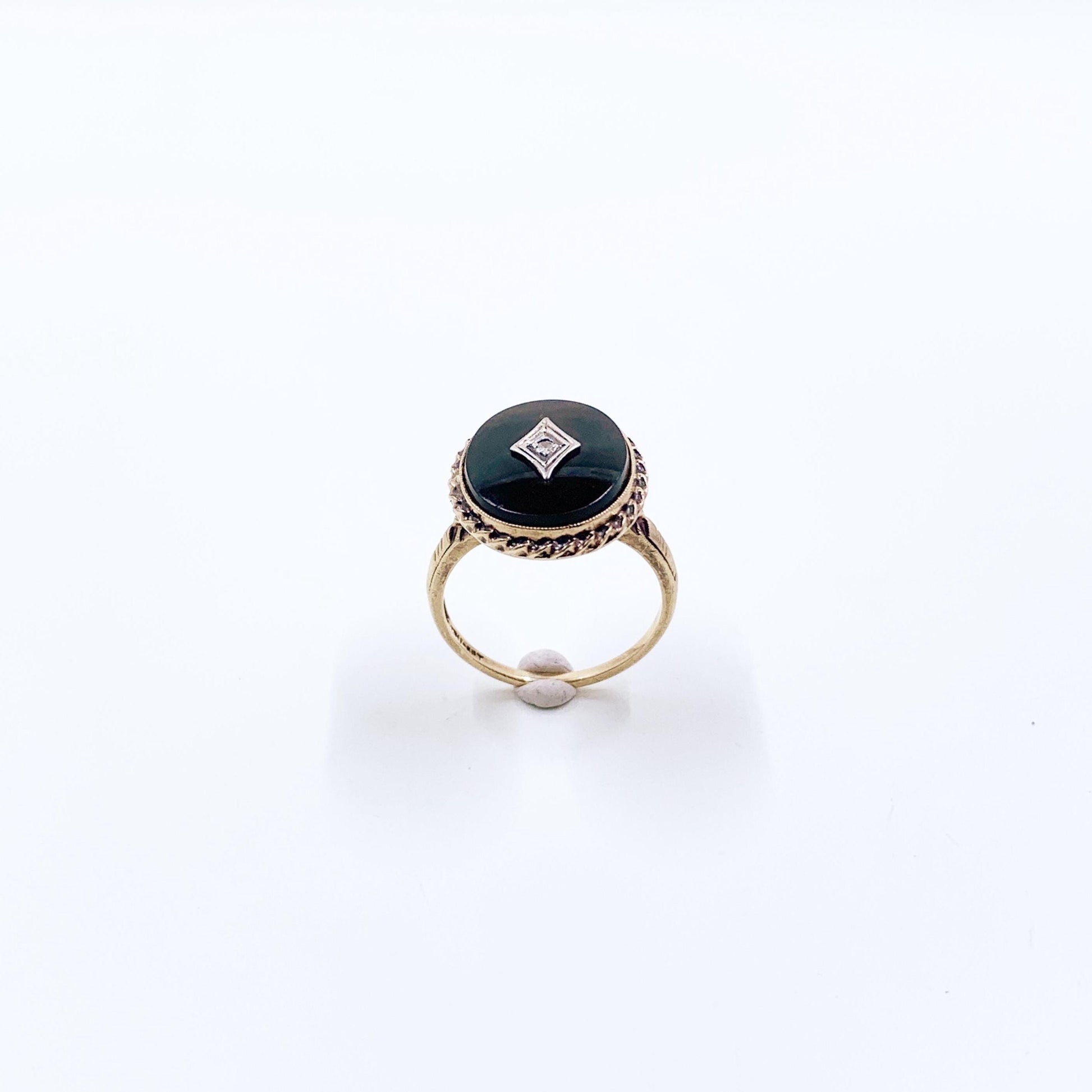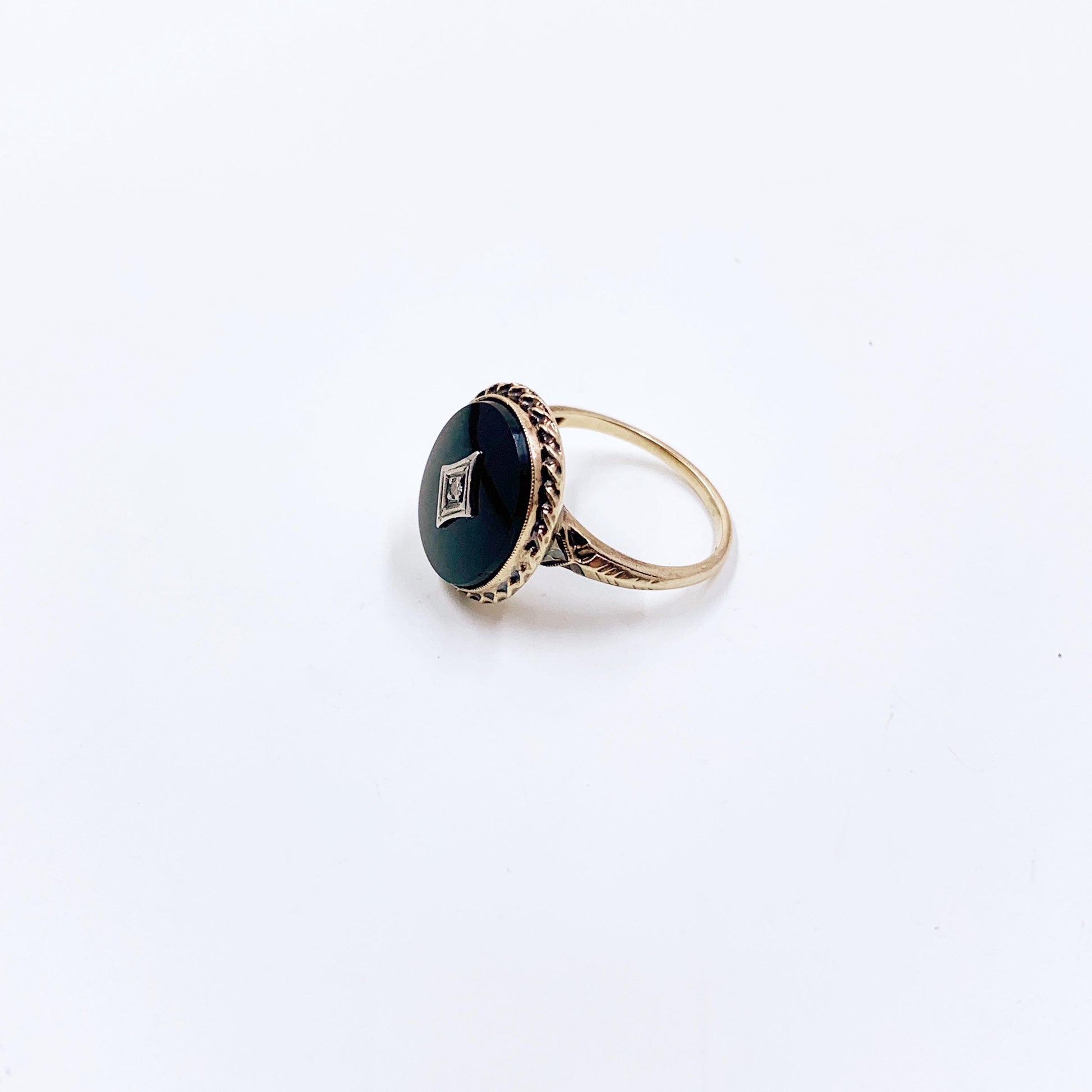 Vintage 10K Tru-Art Onyx and Diamond Ring, Size 5.75 Ring