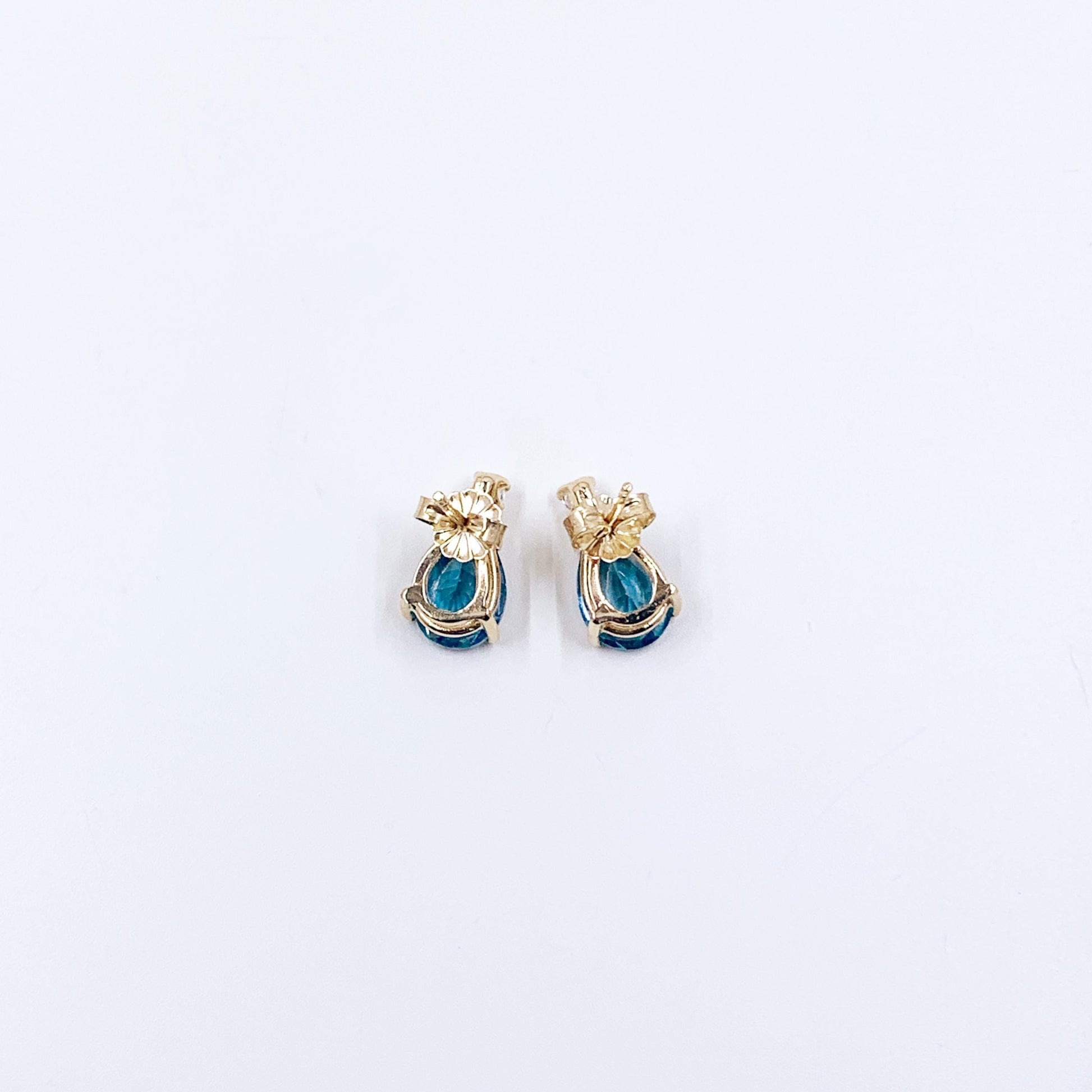 Vintage 14k Gold Blue Topaz & Sapphire Tear Drop Stud Earrings