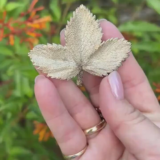 Flora Danica was founded in Copenhagen in 1953 by Orla Eggert and his wife Grethe Eggert. They made unique one-of-a-kind cast jewelry that incorporated natural plant materials in the process. A living flower or a leaf taken as a basis, then coated with silver or 24-carat gold by electroplating leaving behind an exact silver or gold copy of a once living plant.